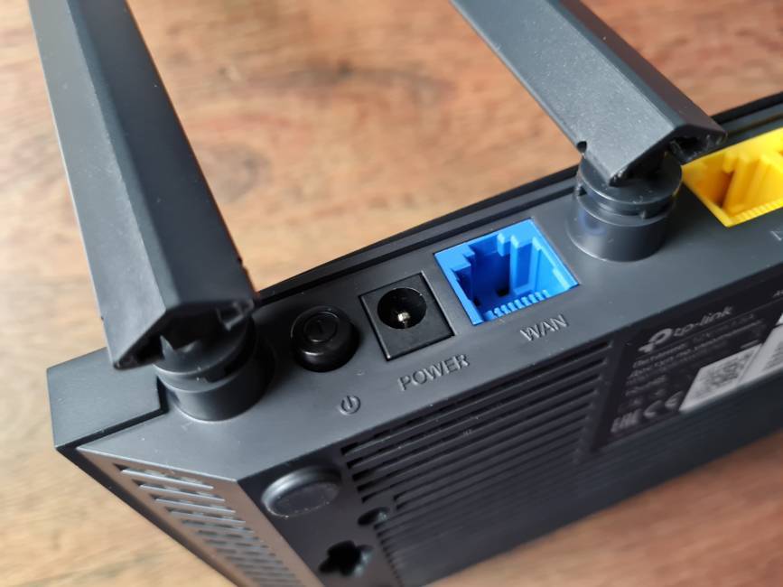 По разъемам и кнопкам отличия уже есть: питание роутера, кнопка включения/выключения, отверстие с кнопкой сброса настроек, кнопка активации WPS и включения/отключения беспроводного вещания Wi-Fi, гигабитный WAN-порт синего цвета и четыре гигабитных LAN-порта уже желтого цвета. Как вы уже догадались, USB-порт решили сюда не устанавливать — это первое серьезное отличие Archer A6 от Archer C5 v4, где USB есть, к слову.