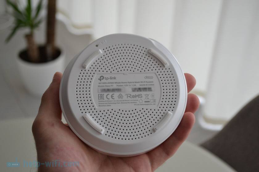 Снизу можно найти кнопку Reset для сброса настроек Mesh Wi-Fi системы, небольшие отверстия для вентиляции и наклейку с заводской информацией. Есть резиновые ножки, благодаря которым модуль очень устойчиво стоит на столе. А вот крепление на стену или потолок не предусмотрено.