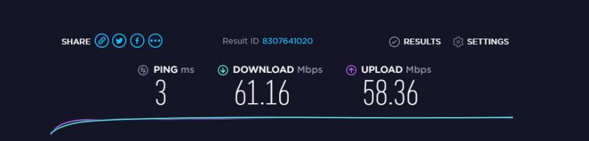 После настройки я конечно же запустил тест скорости подключения к интернету. Вот такие результаты: в диапазоне 5 ГГц на iPhone X: