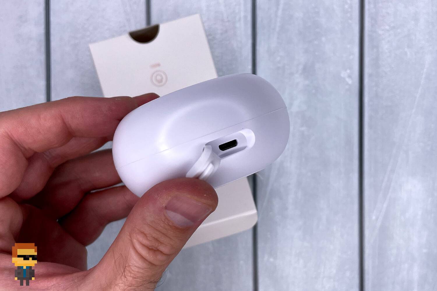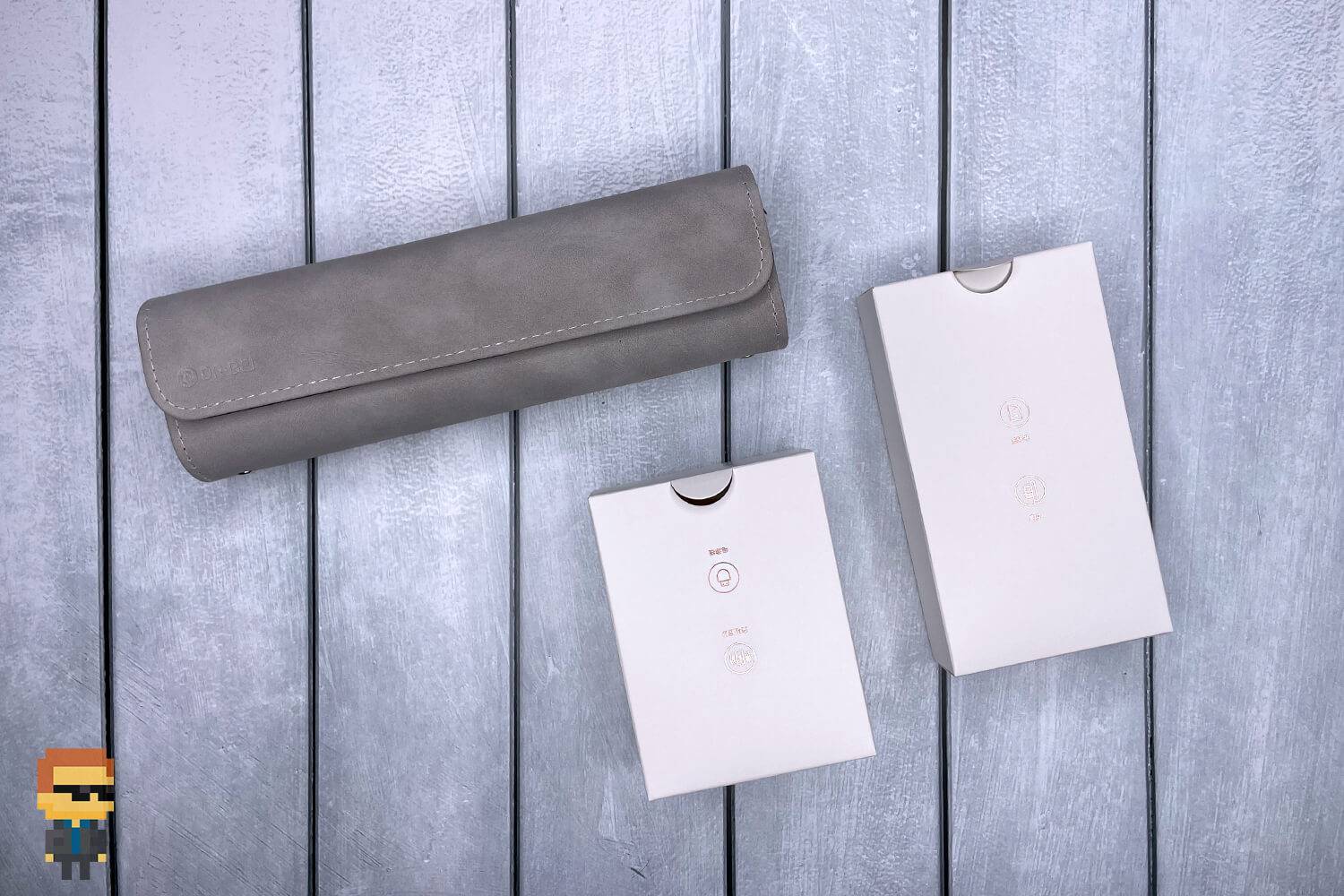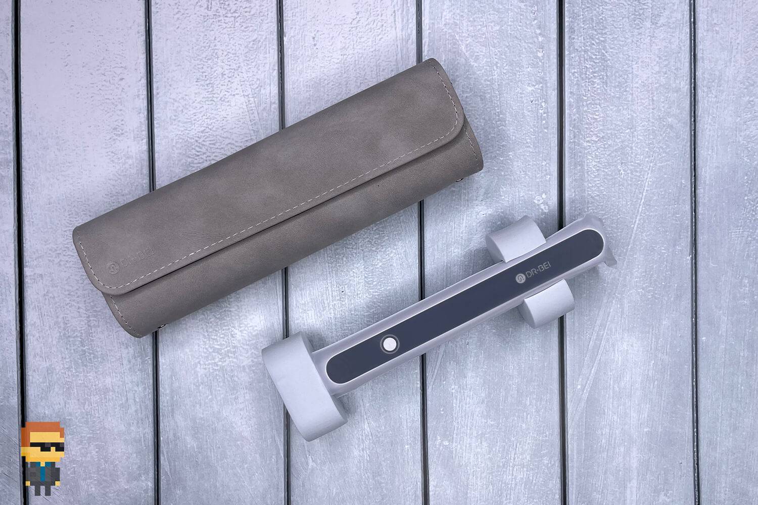 Верхняя коробка содержит зарядную станцию — стильный плотный «бублик» с логотипом DR.BEI.