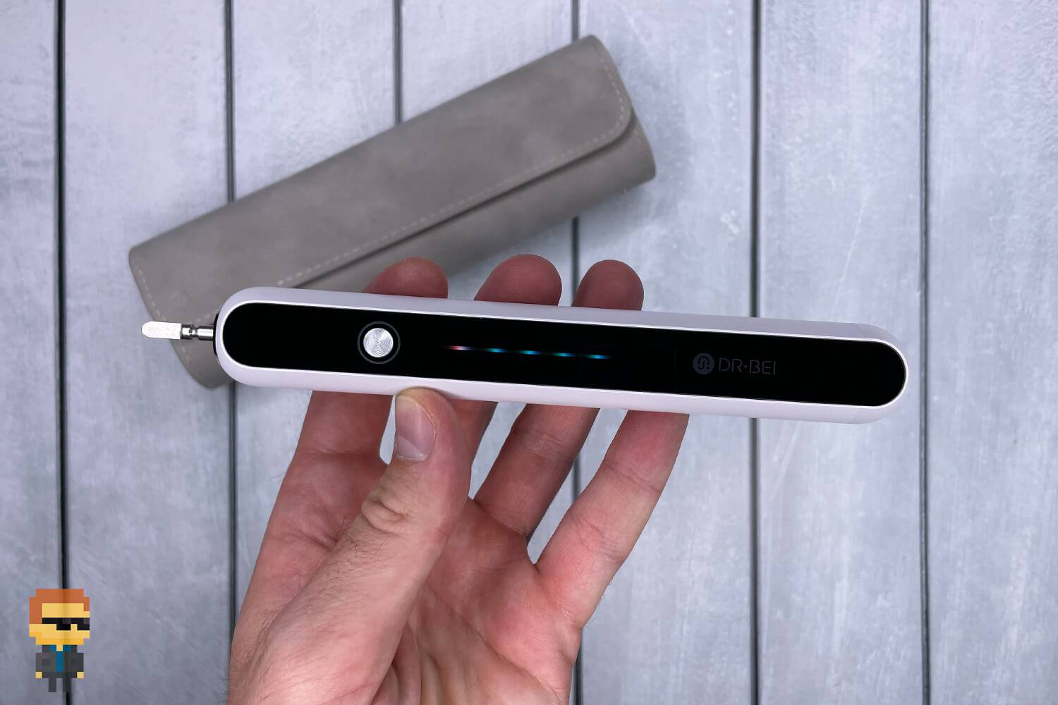 Xiaomi Dr.Bei YC2 Ultrasonic Tooth Cleaner – это ультразвуковой очиститель. Понять, что он работает, можно по загоревшемуся светодиоду и небольшой вибрации, которая ощущается, когда насадка прикасается к твердым предметам, то есть зубам. При этом здесь предусмотрено интеллектуальное распознавание поверхности: если насадка касается мягких тканей (десны), то работа прекращается. Это логичное и правильное решение, так как удалять, не глядя, во рту зубной камень — задача не самая простая, и даже комплектное зеркальце не сильно упрощает задачу. Если бы такого режима не было, то вероятность травмировать десны и мягкие ткани ротовой полости была бы слишком высока.