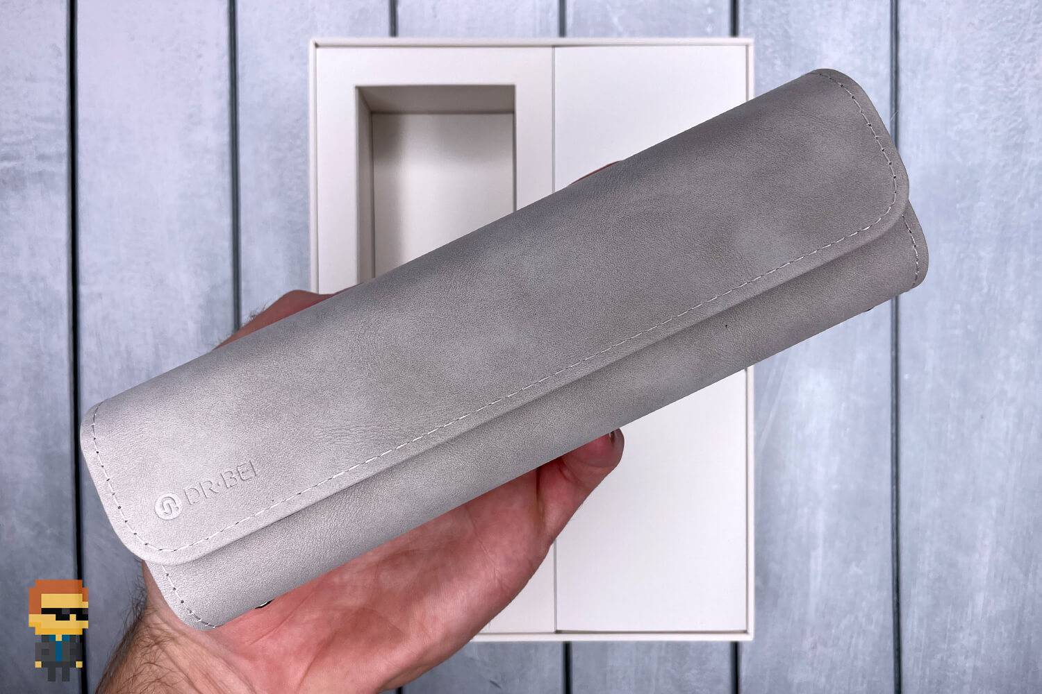 Открываем крышку коробки и первое положительное впечатление усиливается. Под руководством пользователя на русском языке — щетка в крутейшем чехле из серой матовой эко-кожи.