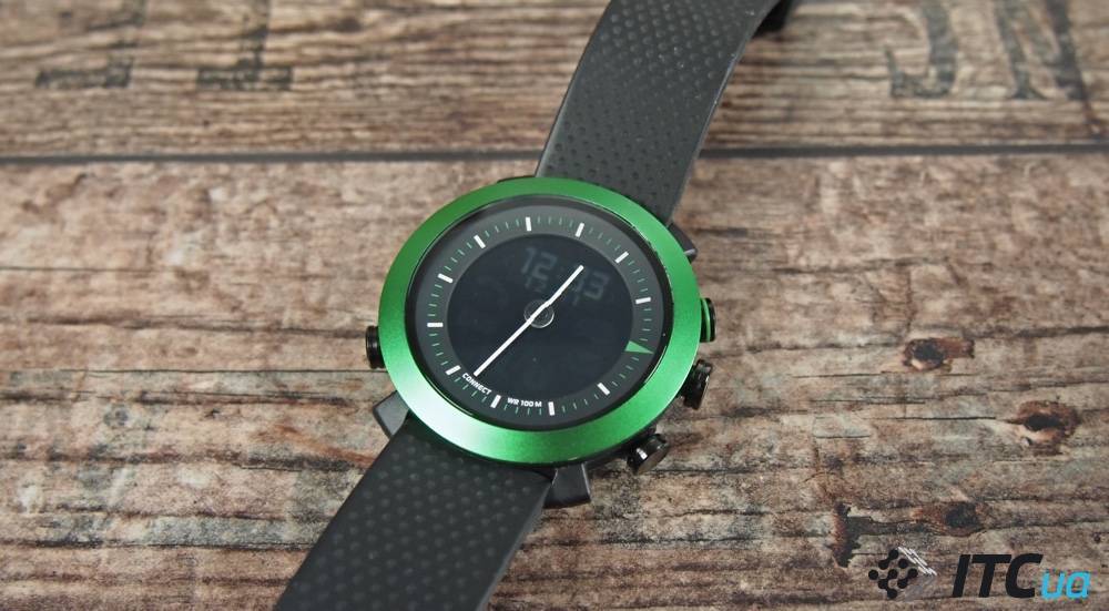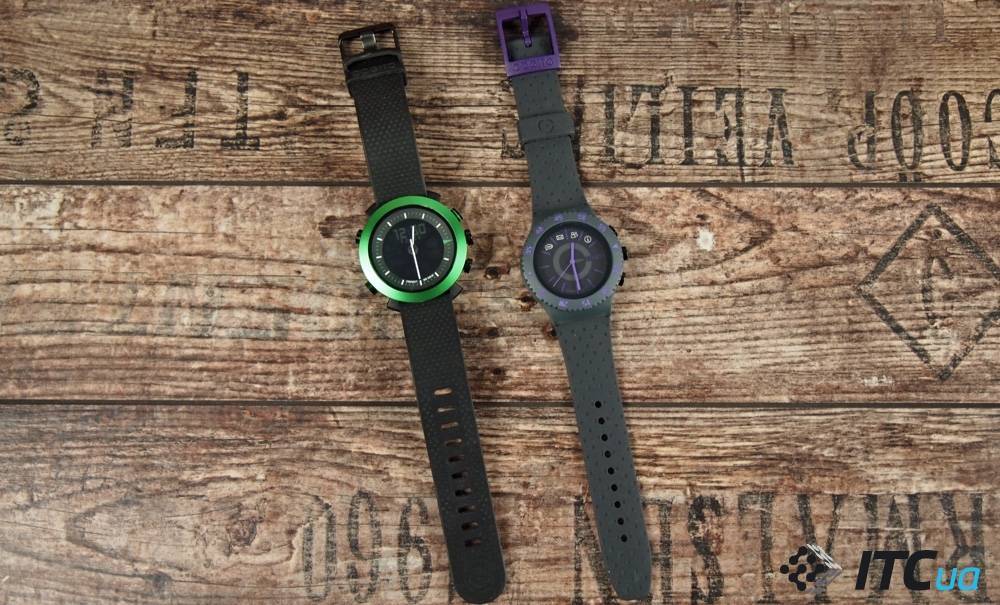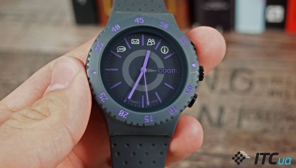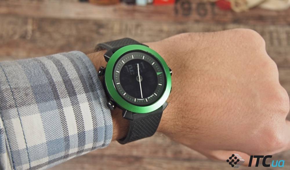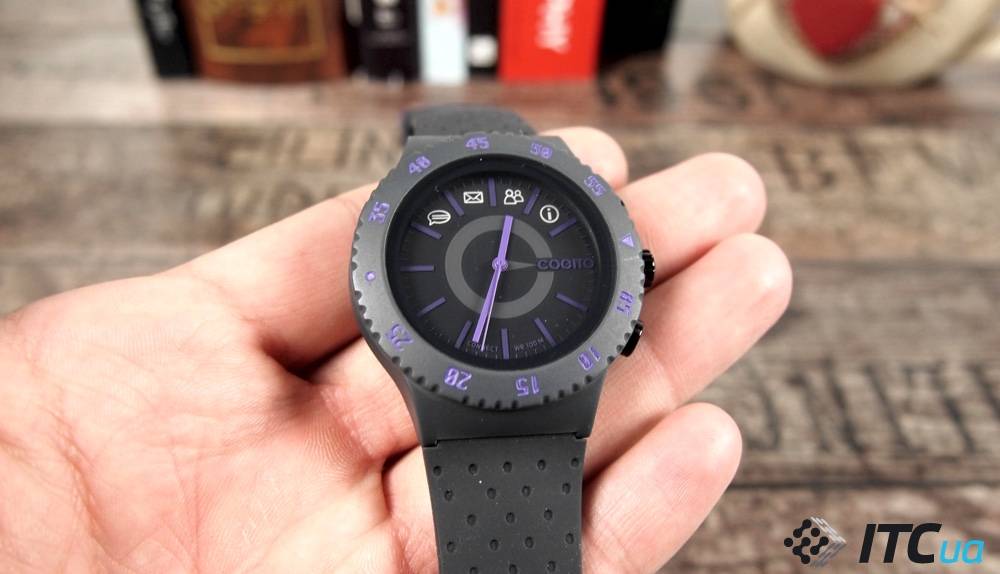 Внешне ничто не выдает природу этих часов – они выглядят, как обычные часы, какими мы привыкли их видеть. Есть шесть цветовых вариаций – оранжевый, фиолетовый, зеленый, черный, серый и белый. Лично мне очень понравились зеленые часы Cogito Classic, фиолетовый и белый вариант придется по вкусу девушкам. Корпус часов имеет матовое металлическое покрытие, а ремешок выполнен из каучука, впрочем, его всегда можно сменить. Конечно, выглядят часы не так серьезно, как, допустим, те же Moto 360 или Asus Zenwatch, однако и стоимость соответствующая. Самый солидный вариант, по моему мнению – именно черный цвет корпуса.