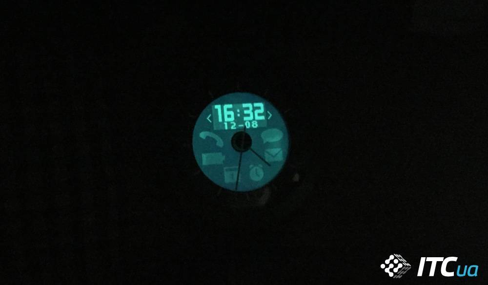 Разбавляет всё это миниатюрный монохромный дисплей, который находится в верхней части циферблата. На него выводится время, дата, а также состояние Bluetooth-соединения. За индикацию оповещений со смартфона отвечают иконки на циферблате.