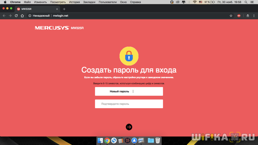Первой настройкой роутера Mercusys будет создание пароля для входа в панель администратора. Из коробки она никак не защищена, и стандартный для других моделей пароль по умолчанию «admin» не подходит — его нужно установить при первом подключении.