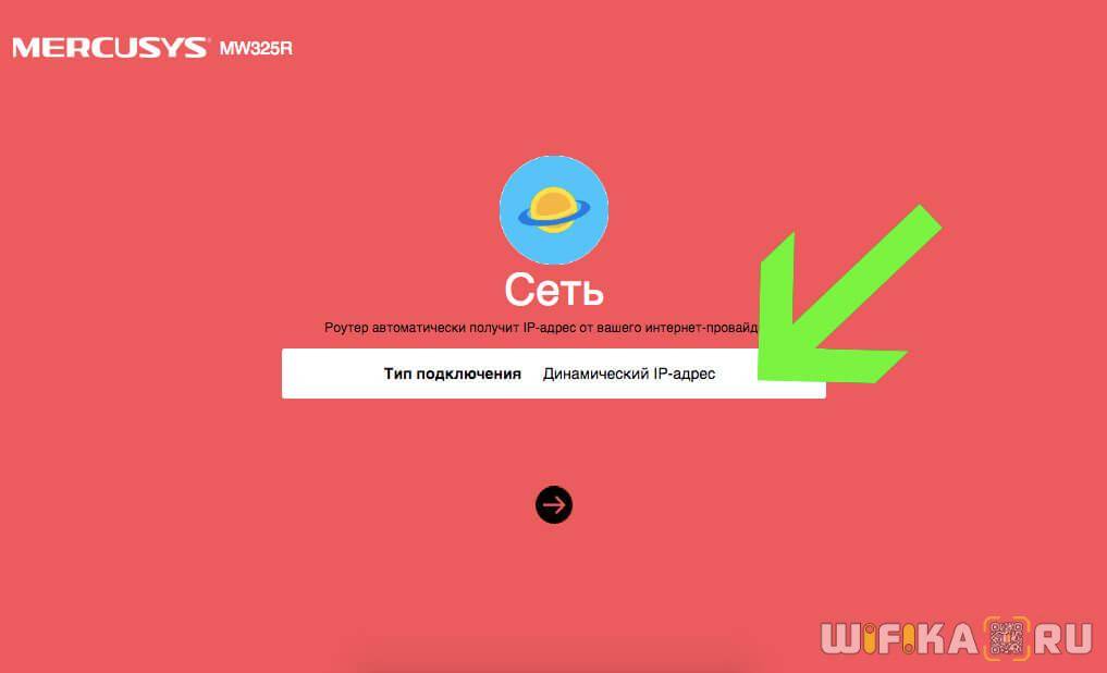 Наконец, самый распространенный и простой — это подключение по динамическому IP . У вас в документах он может также обозначаться как «DHCP». Тут вообще ничего прописывать не нужно — просто выбираем его и жмем на стрелку «Вперед»