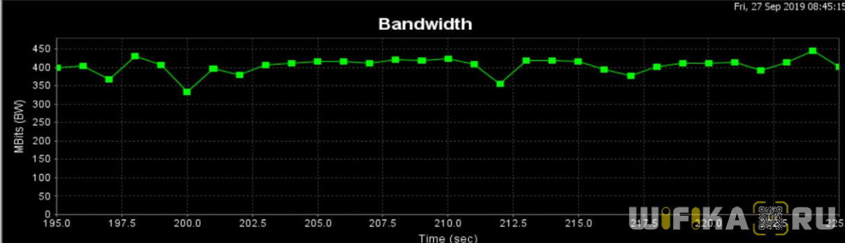 А вот такие результаты мы получим при измерении скорости внутри локальной сети. Здесь уже ограничение в 100 мбит/с, как в случае с интернетом, не действуют, что дает маршрутизатору раскрыться в полную силу.