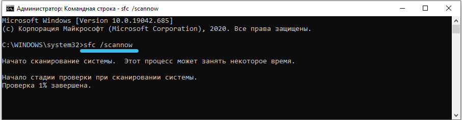 - Запустить командную строку от имени администратора и ввести команду sfc /scannow