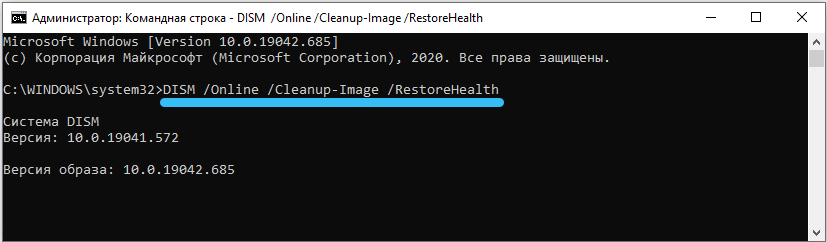 Первое, что необходимо сделать при возникновении подобных ошибок, – проверить целостность системных файлов, благо, что для этого в Windows имеется специальная утилита, умеющая не только проверять, но и исправлять найденные ошибки. Запускать её нужно из командной строки. Сначала в окне терминала набираем sfc /scannow, а после нажатия Enter – строку DISM /ONLINE /CLEANUP-IMAGE /RESTOREHEALTH.