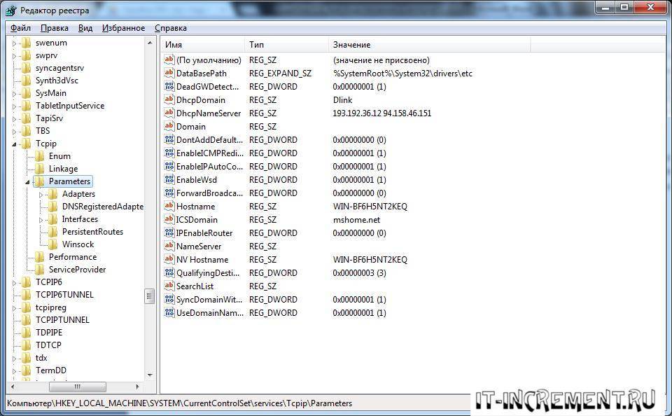 - Перейти по следующему пути: HKEY_LOCAL_MACHINE\SYSTEM\CurrentControlSet\Services\Tcpip\Parameters.