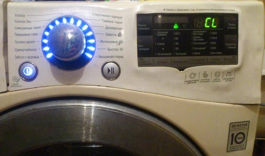 Он защищает машину LG от возможных посягательств маленьких детей, выключение ими машины или изменение режима от случайного нажатия. Возможно, что он был активирован вами в прошлую стирку случайно или сознательно, но вы забыли об этом. Возможно, это сделала другие члены семьи, и забыли предупредить. Как бы то ни было, этот факт не стоит особых переживаний. Код ошибки CL это обычное информационное сообщение, но никак не ошибка.