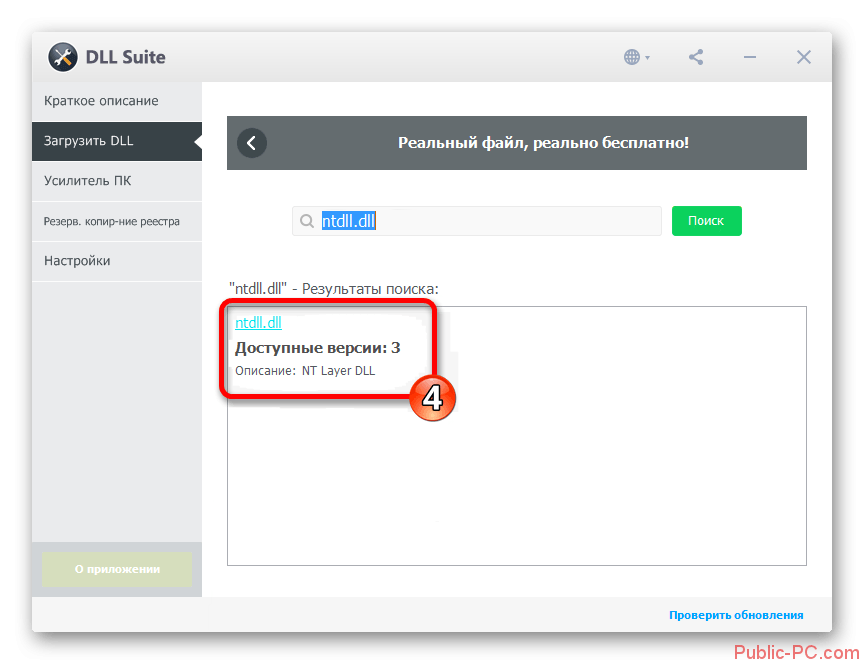 Данная программа была разработана для оптимизации работы компьютера. С её помощью можно получить информацию по системным характеристикам ПК, выполнить оптимизацию, а также загрузить недостающие DLL-файлы. В случае с KERNELBASE.dll при загрузке «чистой» библиотеки, имеющаяся версия на компьютере будет просто перезаписана.
