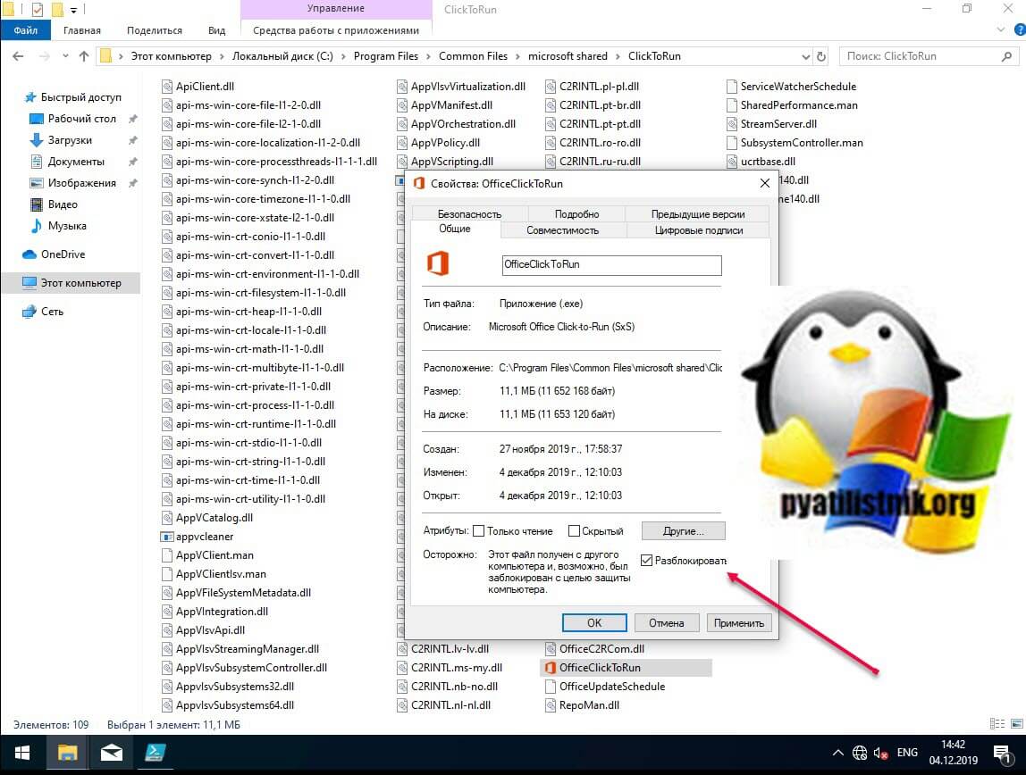 Кстати разблокировать файл можно и через командлеты PowerShell через такую конструкцию: Unblock-File -Path C:\Program Files\Common Files\microsoft shared\ClickToRun\OfficeClickToRun.exe
