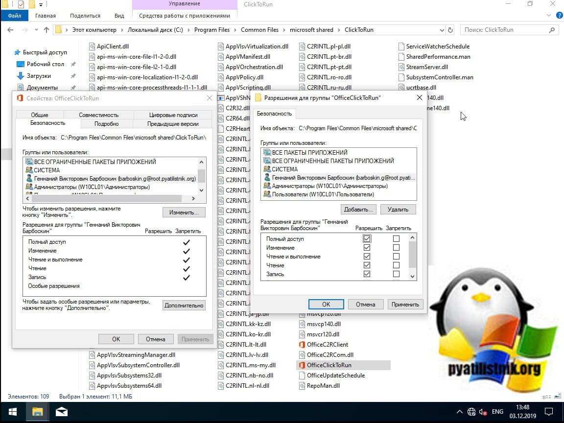 Если по каким-то причинам вам не помогли первые два метода и вы до сих под при запуске исполняемого файла exe или ярлыка, получаете окно с ошибкой “Windows не удается получить доступ к указанному устройству, пути или файлу”, то следует посмотреть какие разрешения выставлены в его свойствах, это очень важно. В моем примере, это файл OfficeClickToRun.exe