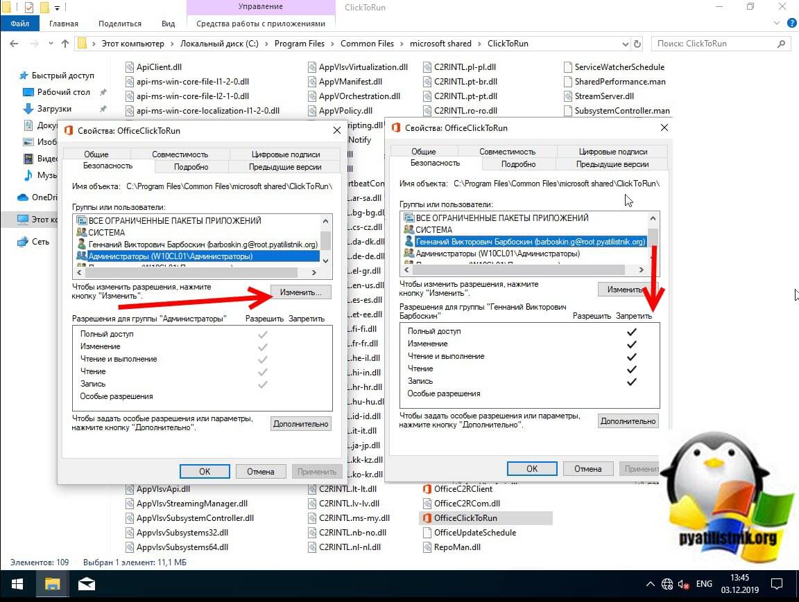 Понимая принцип работы приоритетов на доступ, вам необходимо снять ограничения запрета на данный файл, для этого нажмите кнопку “Изменить”. В открывшемся окне найдите нужную группу или пользователя и назначьте ему полный доступ на данный файл (или снимите явные запрещения).