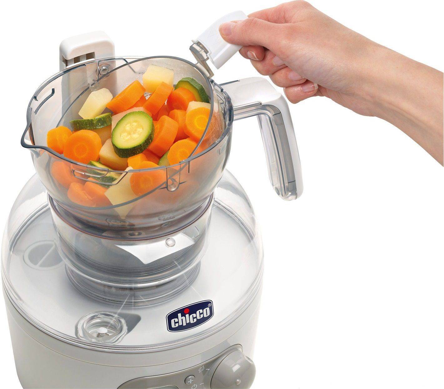 Кухонная техника для измельчения продуктов и обработки паром от Chicco отличается бюджетностью и простотой исполнения. Сделана из качественного пластика с цветными вставками.