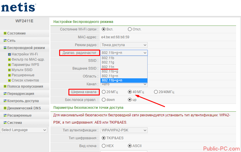 Если постоянно падает скорость интернета, возможно маршрутизатор работает в неправильном режиме и не на той ширине канала. Исправим это в настройках.