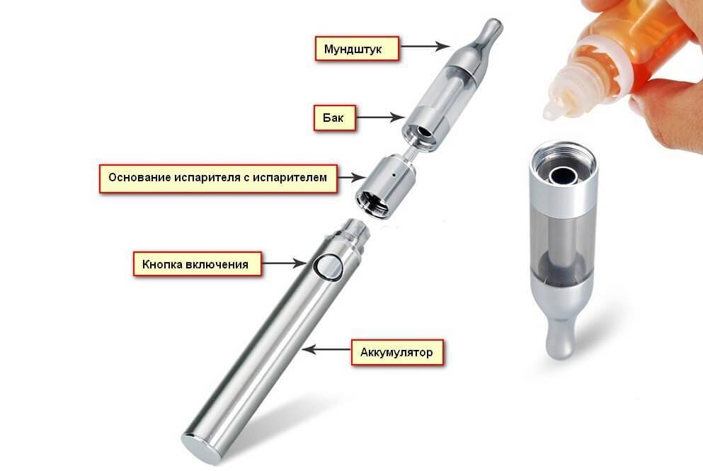 Сегодня электронные сигареты имеют самые разнообразные виды. Однако суть устройства общая. На схеме это выглядит примерно так: