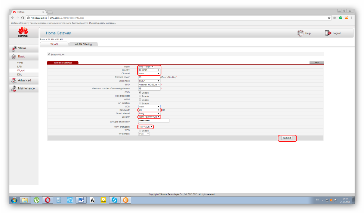 Тип аутентификации WPA/WPA2-Personal и шифрование AES.