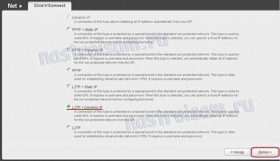В случае Билайн — выбирать надо L2TP+Dynamic IP: