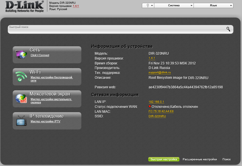 Роутер также пробует подключиться к Сети, используя настройки по умолчанию — как правило, это доступ с динамичными IP. Включается также открытая сеть Wi-Fi с именем в формате «DIR-320_<концовка_MAC-адреса>». Если подключения к интернету нет, а также вы не планируете делать свой трафик доступным всем вокруг — пришла пора заняться настройкой DIR-320 всерьёз.