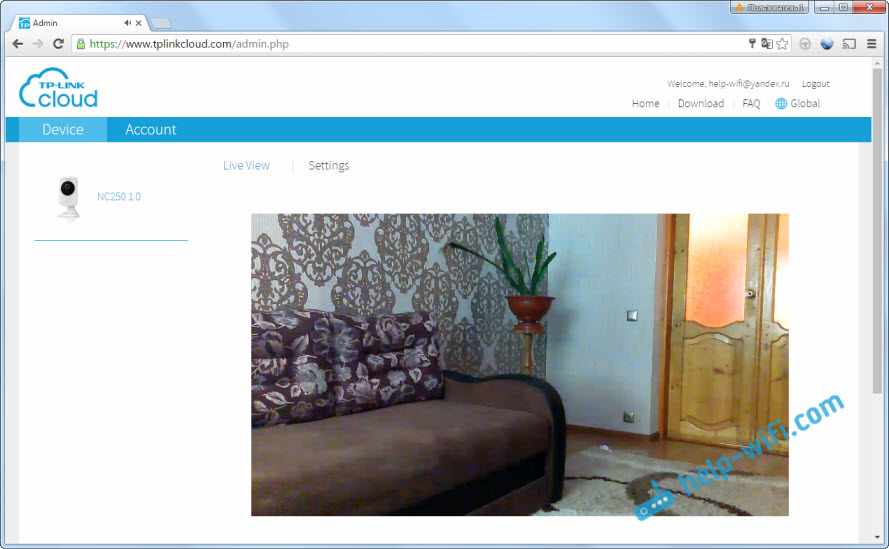 Все что вам нужно знать, это электронную почту и пароль, под которыми вы регистрировались на сайте tplinkcloud.com. С любого браузера заходим на сайт, заходим под своими данными, и видим нашу камеру. Которую предварительно нужно добавить через программу на мобильном устройстве (как я показывал выше).