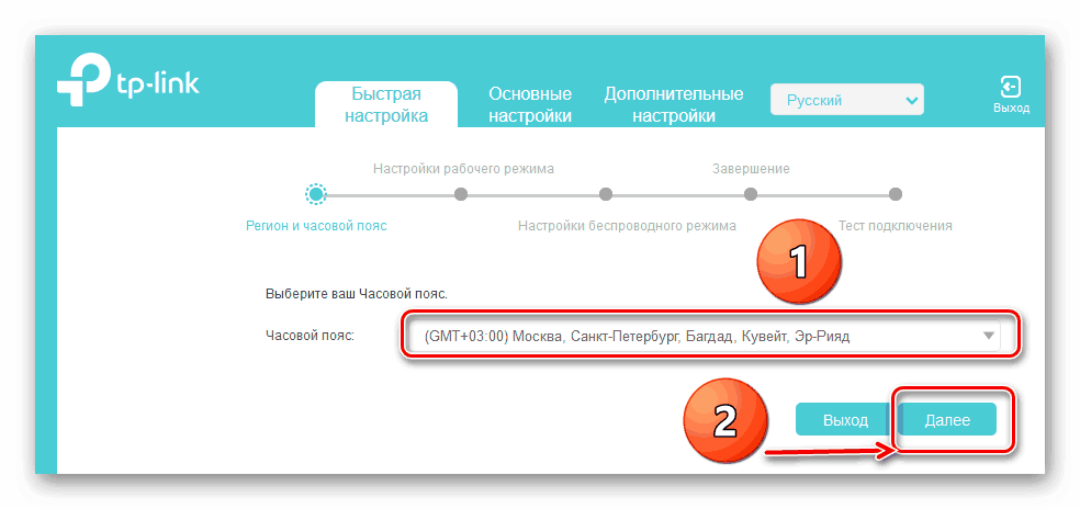 На первой странице выбираем регион нахождения и свой часовой пояс. Затем следуем далее.