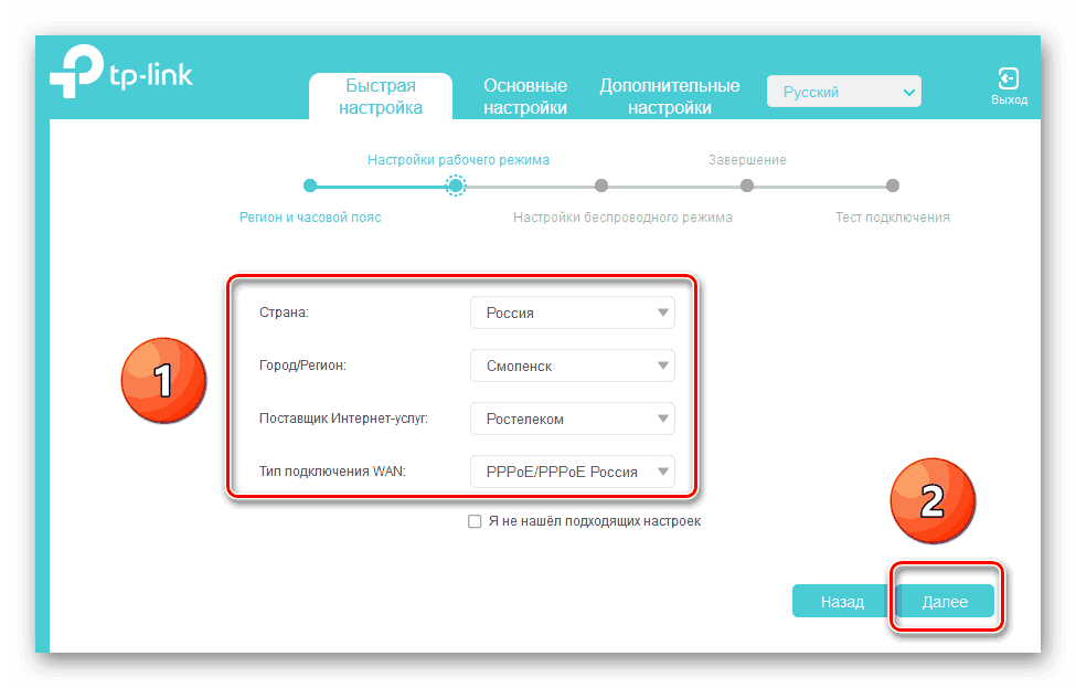 Следуя подсказкам мастера и вводя необходимые значения, предоставленные провайдером, можно произвести быструю первоначальную настройку сети.