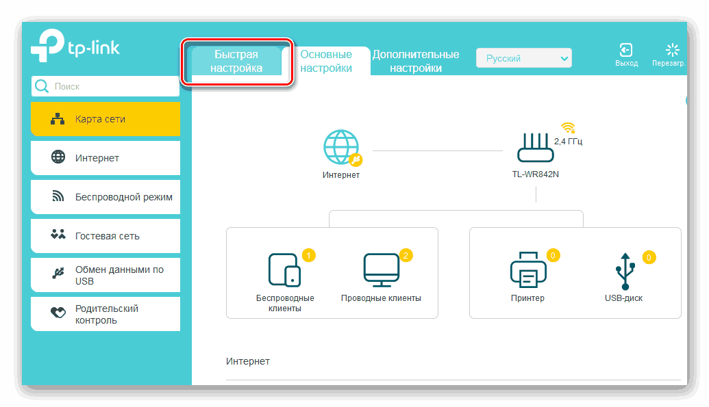 Еще один быстрый способ сконфигурировать сеть, выбрать в меню слева пункт «Быстрая настройка».