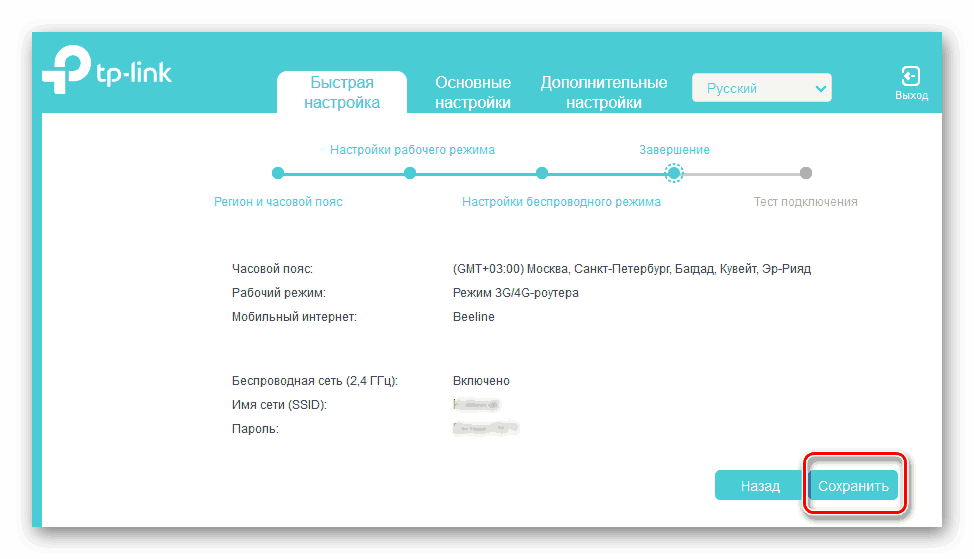 Теперь проверяем правильность указанных настроек и кликаем на иконку «Сохранить». Происходит тест подключения, роутер перезагружается и новая конфигурация вступает в силу.
