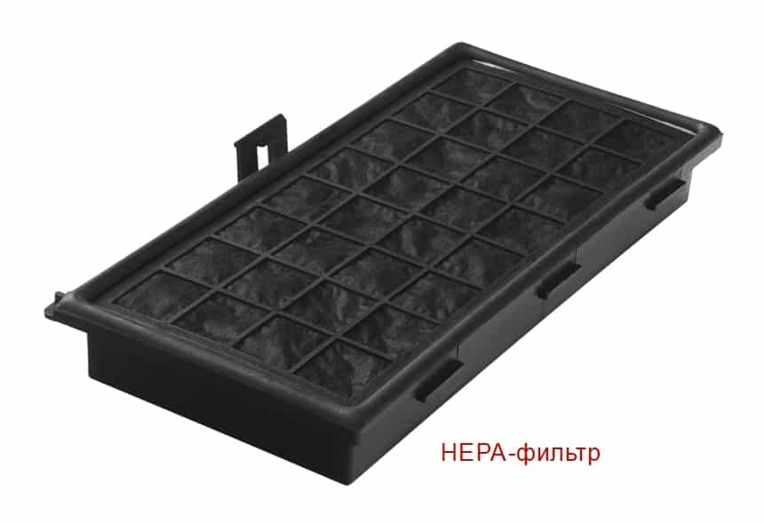 - другой – это фильтр HEPA, благодаря ему выпускаемый воздух очищается от аллергенов и мелких частиц, не задержанных мешком.