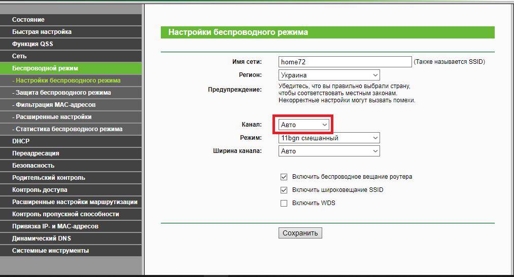 Установка канала и типа сигнала на роутере