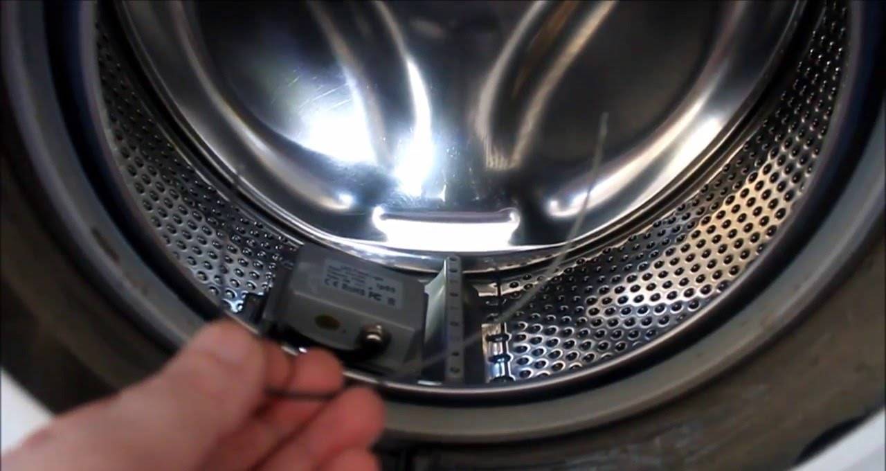 Определить, что источник шума в постороннем предмете, несложно: будет слышен скрежет, скрип и гул при вращении барабана на всем протяжении цикла. Логично, что решение проблемы одно – достать вещь. Чтобы сделать это, придется снять заднюю панель стиралки, открутить удерживающие ТЭН болты и вынуть нагреватель, а освободившееся отверстие просветить фонариком. Как только ключи или монета будут найдены, просовываем руку, зацепляем пассатижами или мастерим крюк из металлической проволоки.