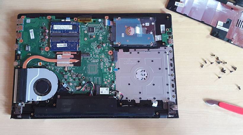 Если причина перегрева – накопившаяся на внутренних поверхностях и радиаторе ноутбука пыль, то устройство первым делом потребуется разобрать. Для подавляющего большинства моделей лэптопов в Сети даются подробнейшие инструкции по разборке. Тем не менее приведем примерный порядок действий, так как в общем все они для разных моделей схожи: