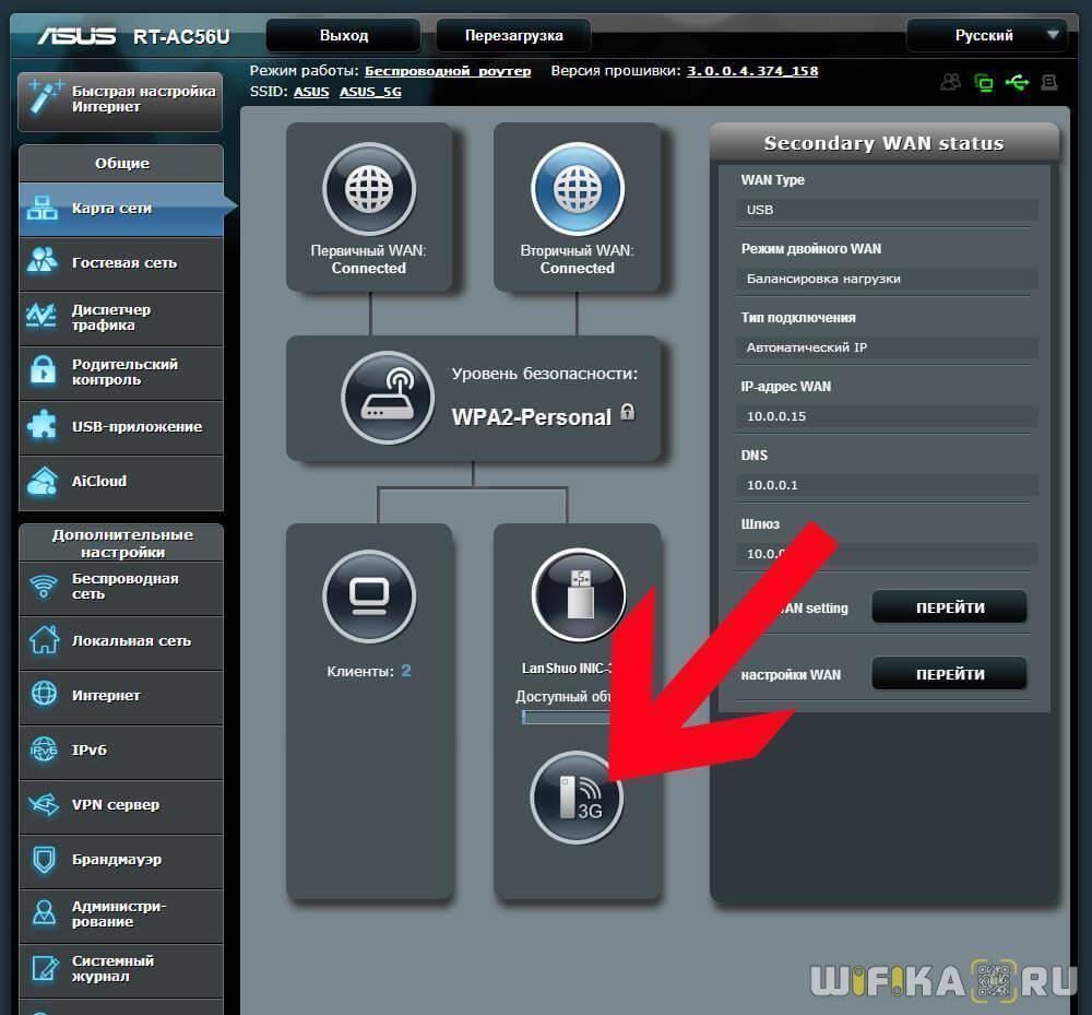 Это особенно полезно, если с вашим кабельным интернетом случились какие-то проблемы — при нестабильном сигнале роутер Asus начнет автоматически получать интернет от 3G-4G модема без прерывания выхода в сеть для подключенных к WiFi устройств, так что пользователи даже ничего не заметят.