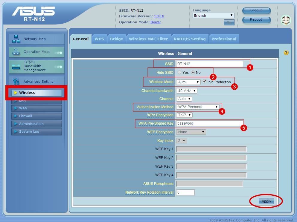 Сделать ASUS RT N12 VP маршрутизатором, с помощью которого, интернет будет раздаваться для других устройств, тоже не трудно. Итак, Wi-Fi на роутере n12vp настраивается в разделе «Беспроводная сеть». Введите такие параметры в пункте «Общие»: