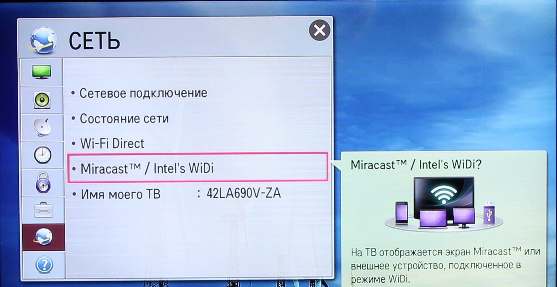 - подключение Miracast или Widi на телевизоре (иногда не включается самостоятельно, по умолчанию);
