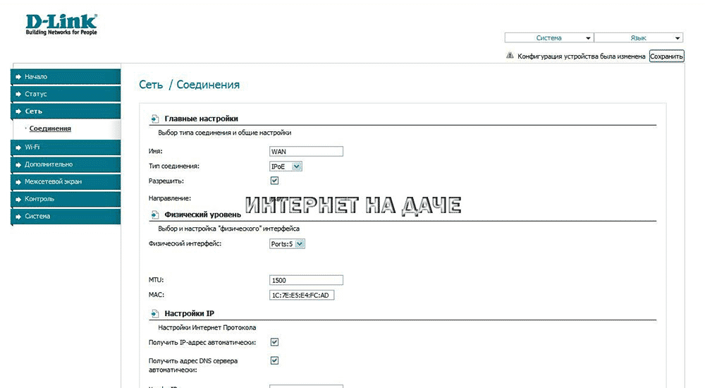 - IP и ДНС настроены на автополучение.