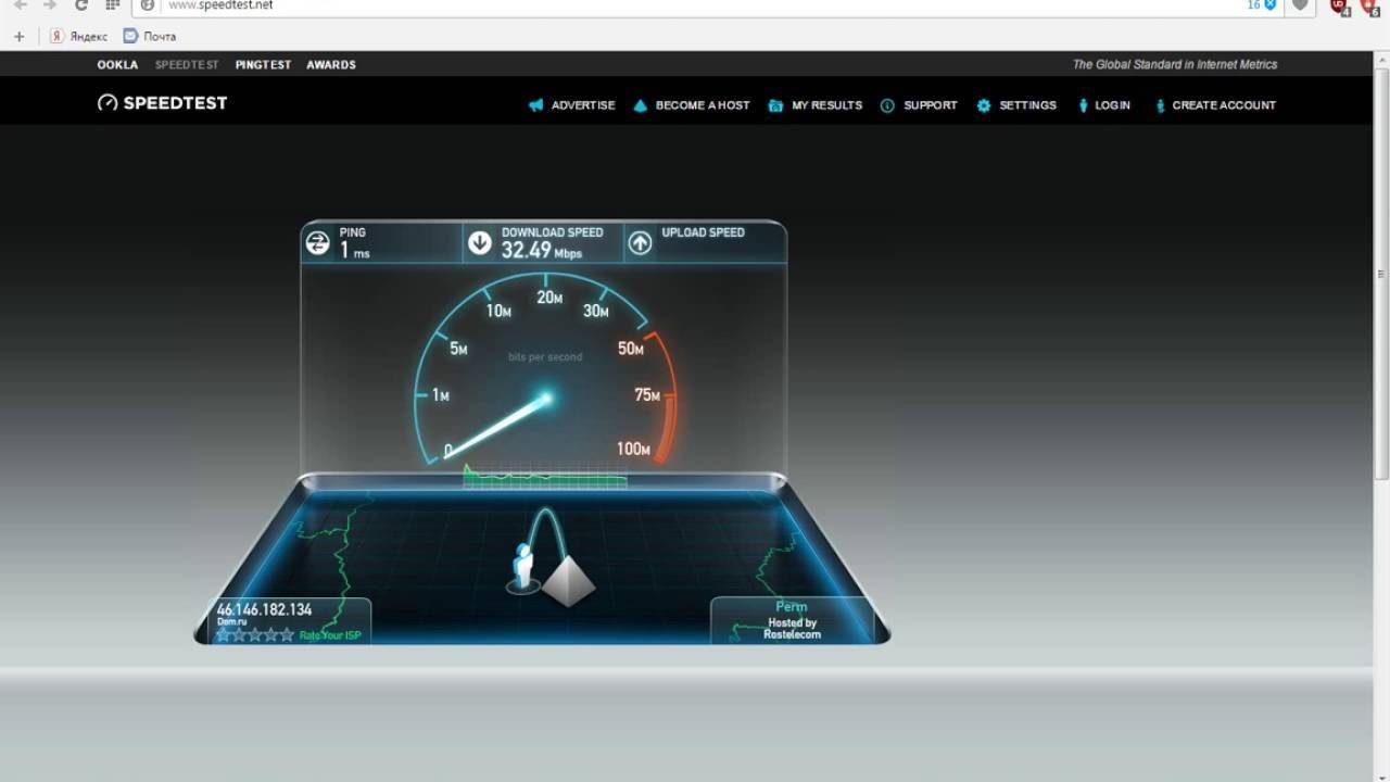 Для уточнения достаточно подключить устройство через кабель к персональному компьютеру и зайти на любой из тестирующих онлайн-сервисов. Сайт перейдет на ближайший сервер и проверит показатели скорости. После завершения теста нужно записать полученные результаты. Второй шаг — присоединение роутера при помощи интернет-кабеля и повторный замер через сетевое подключение оборудования (через вай-фай).