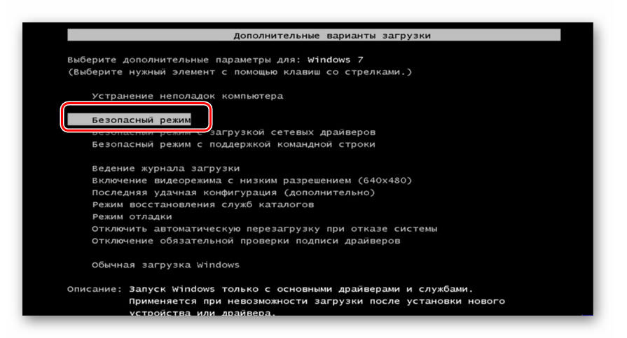 Выполнять очистку стоит в безопасном режиме. Для этого перезапускаем ПК и жмём F8 для открытия меню дополнительных вариантов загрузки. На экране должно появится нечто подобное: