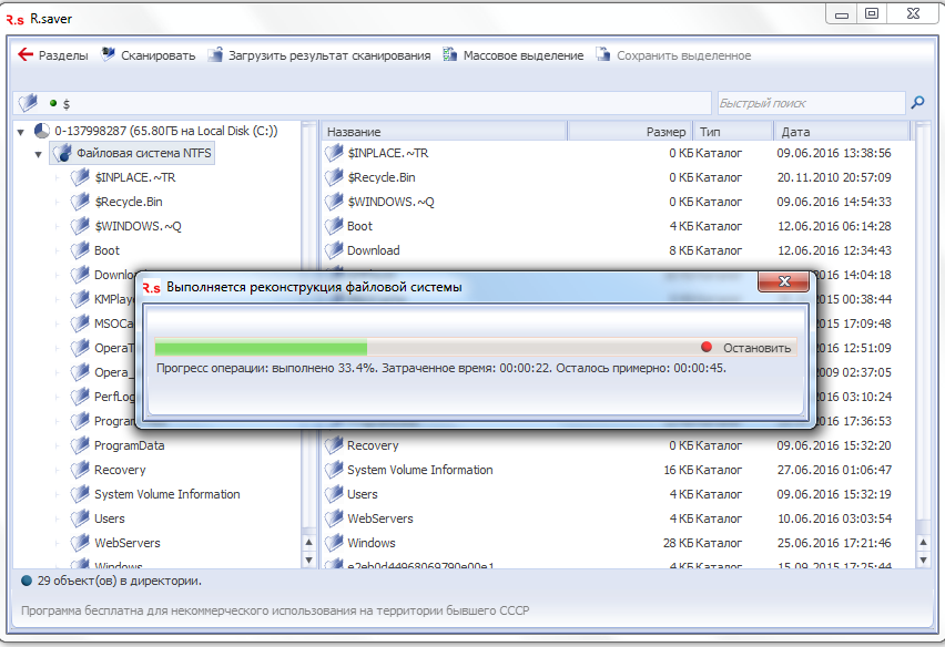 После завершения процесса сканирования, нам представляется файловая система в реконструированном виде.