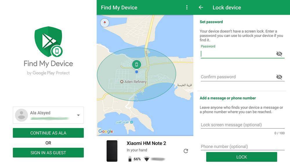 С помощью зарегистрированного аккаунта в Google, пользователь сможет найти потерянное или украденное мобильное устройство. Поиск телефона осуществляется моментально и месторасположение высвечивается в Google Maps. Дополнительной и полезной функцией приложения Find My Device является возможность владельца отправить сообщение нашедшему человеку о просьбе вернуть мобильник и о возможной встречи для передачи устройства законному владельцу. В том случае, когда шанса на возврат телефона нет, то пользователь может заблокировать потерянный гаджет и всю информацию в нем: номера абонентов, фотографии и сообщения.