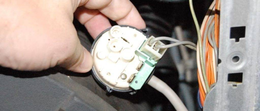 Следующая причина поломки может заключаться в неисправности датчика уровня воды. Это связано с его конструкцией, в которой толкающей силой выступает закачанный в шланг воздух. Заливаясь, вода начинает на него давить, в свою очередь, воздух давит на шток, который препятствует подаче воды.