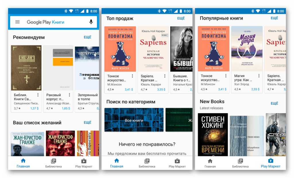 - Установка отдельного приложения с платным контентом. Это самый простой и в то же время легальный метод получения файлов. Такие программы отличаются тем, что в них каждая книга стоит определенную сумму денег. Соответственно, однажды заплатив за товар, пользователь навсегда становится владельцем записи. Каталоги таких программ имеют самый широкий ассортимент и всегда включают последние новинки рынка.