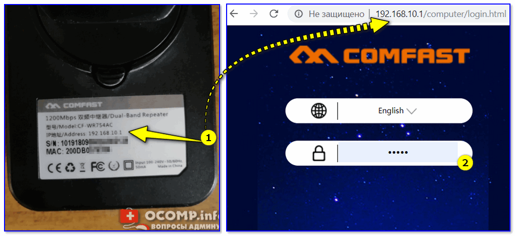 IP-адрес настроек роутера Comfast (по умолчанию!)