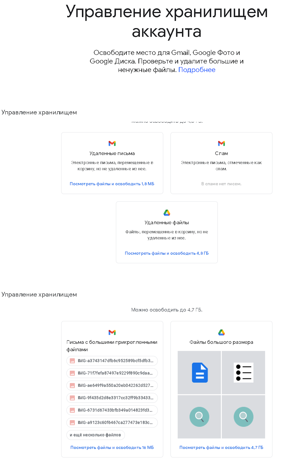 Решение этой проблемы довольно простое – полная очистка Google Диска, Gmail и Google Фото от всего, что накопилось годами, но точно не несет никакой практической пользы. С папкой «Спам» все просто и понятно – ее можно очистить полностью.