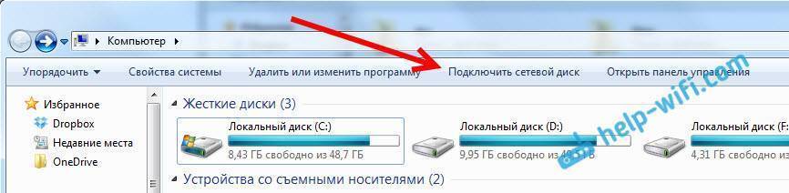 Для этого, заходим в “Мой компьютер” (не забываем, что в Windows 10, это “Этот компьютер”), и нажимаем на пункт “Подключить сетевой диск”. Если у вас Windows 10, то сначала нажимаем на пункт “Файл” – “Подключить сетевой диск”.