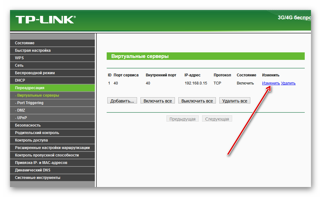 Если вы хотите убрать дополнительный порт на роутере, то тапаем на значок «Удалить» и стираем ненужный виртуальный сервер.
