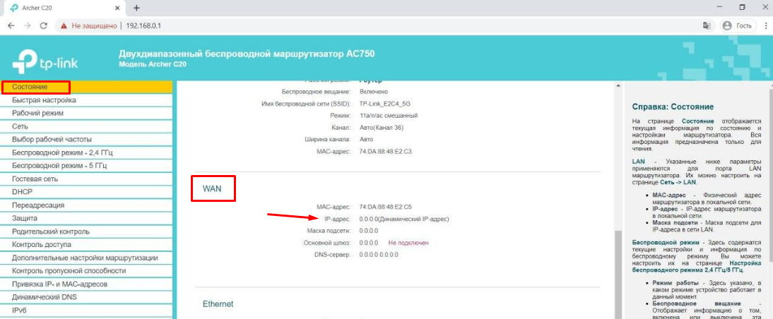 Для того чтобы посмотреть внутренний IP-адрес, в настройках роутера, в меню слева выберите раздел «Состояние», там опустите страницу до пункта «WAN» и в строке «IP-адрес» Вы сможете узнать свой внутренний адрес по которому необходимо подключаться к Вашему домашнему устройству ИЗ СЕТИ UNET.BY/Анлим.Бел.