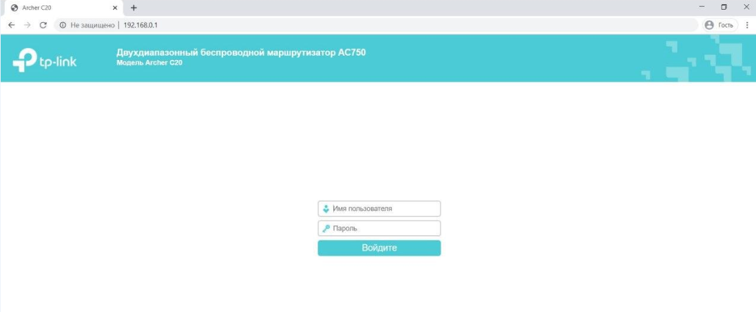 2. На открывшейся странице Вам необходимо ввести логин и пароль, чтобы попасть в настройки роутера. Если ранее Вы не меняли имя пользователя и пароль необходимые для входа в настройки роутера, то Вам необходимо ввести в качестве имени пользователя – admin, в качестве пароля – admin. После чего нажмите кнопку «Войдите».